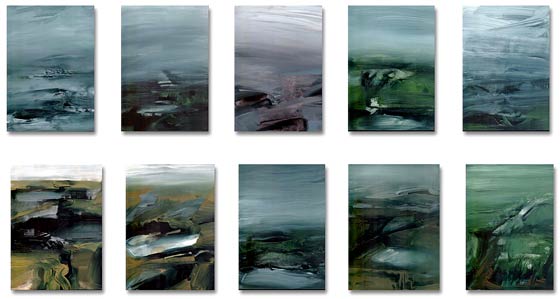 Landschaft (Nr.8-17), 2001, Öl auf Papier, je 21 cm x 15 cm
