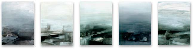 Stadt (Hafen, Nr.1-5), 2000, Öl auf Papier, je 25 cm x 18 cm